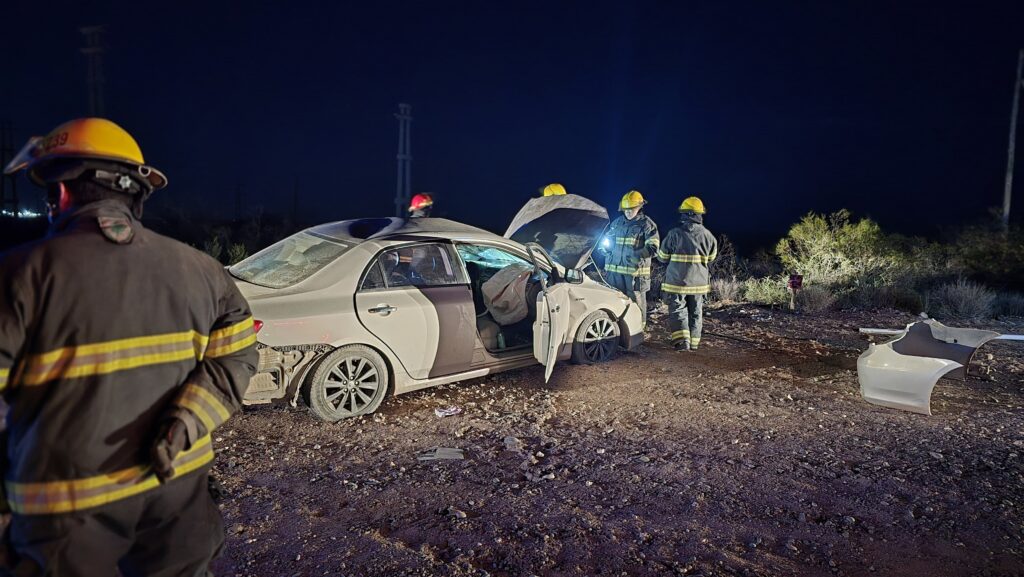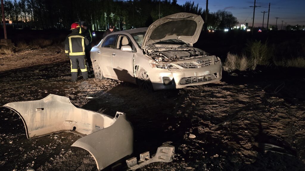 Los daños fueron más que importantes en el lateral izquierdo, el techo y los airbags se habían activado. El lugar donde ocurrió el choque no cuenta con iluminación y cuando bomberos intervenían, por poco no hubo otro siniestro.