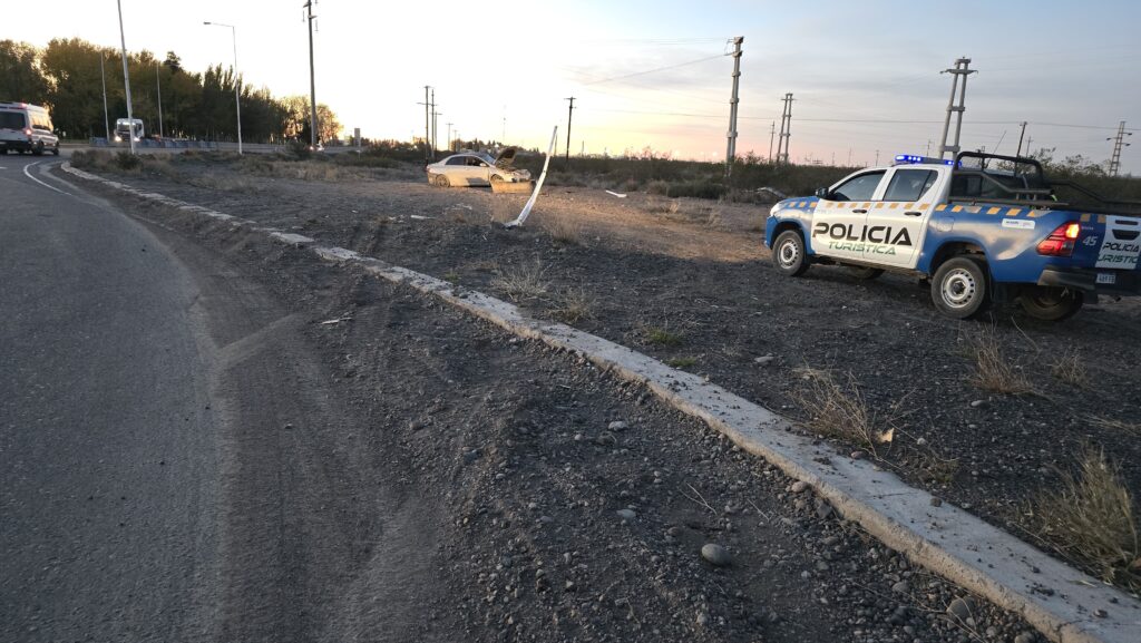 Pasó de largo en la rotonda de la Ruta 51 y chocó contra una luminaria y la derribó