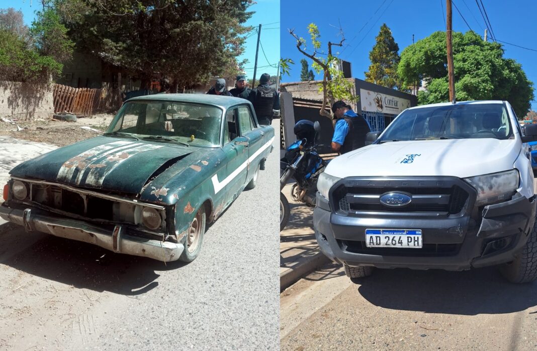 En horas del mediodía del martes un choque ocurrió en las calles Guatemala y Ecuador, en Centenario. Un joven de 23 años perdió el control de un auto Ford Falcon y chocó contra el frente de una camioneta Ford Ranger perteneciente a la Dirección de Compras del municipio de Centenario.