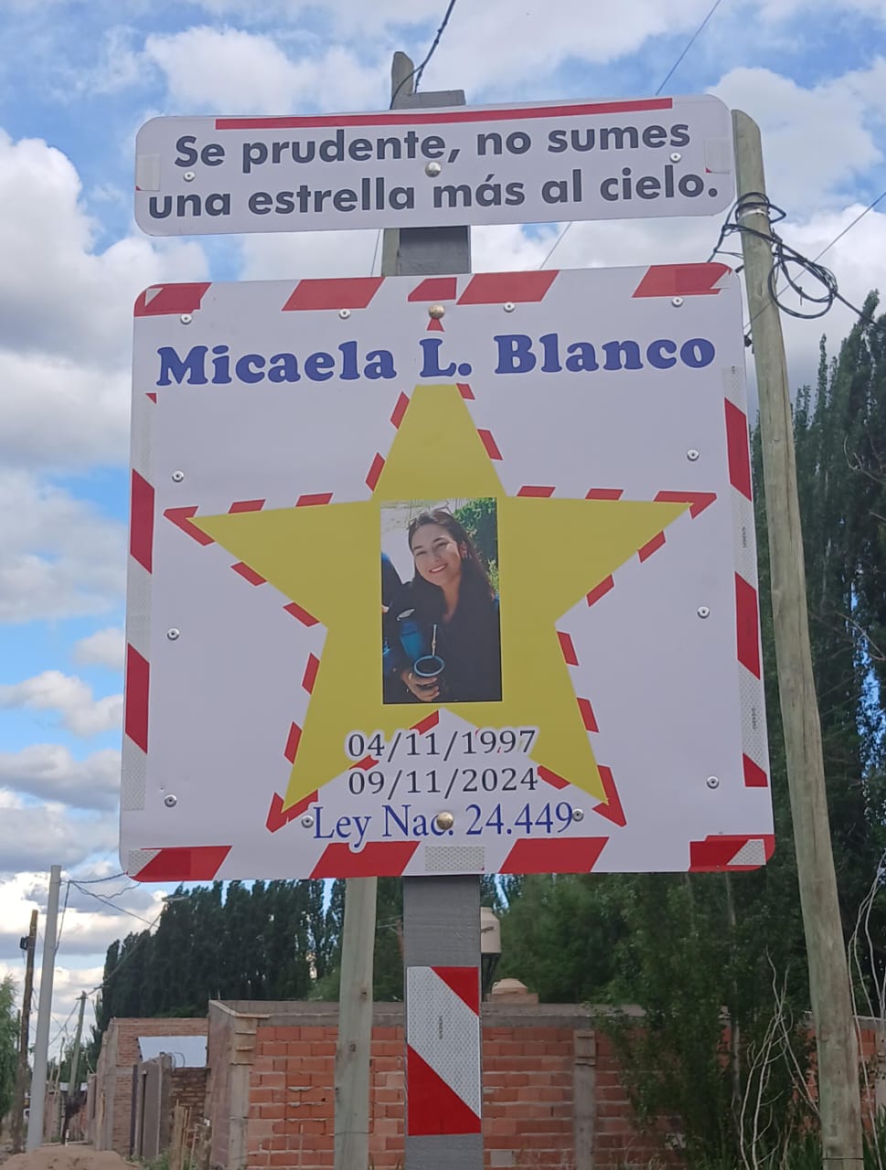 En la cinta asfáltica fue pintada la estrella que recuerda a Micaela, aquella que advierte a los automovilistas de que la irresponsabilidad al volante se llevó una joven vida, a un costado colocaron un cartel con su imagen y el mensaje que recalca el pedido de prudencia al transitar.