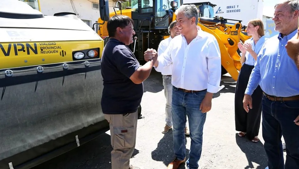 El acto fue encabezado por el gobernador, Rolando Figueroa, también participaron la ministra de Infraestructura, Tanya Bertoldi, el presidente de Vialidad Provincial, José Dutsch, el intendente de Zapala, Carlos Koopmann, el diputado provincial Gabriel Álamo, funcionarios del organismo y trabajadores.