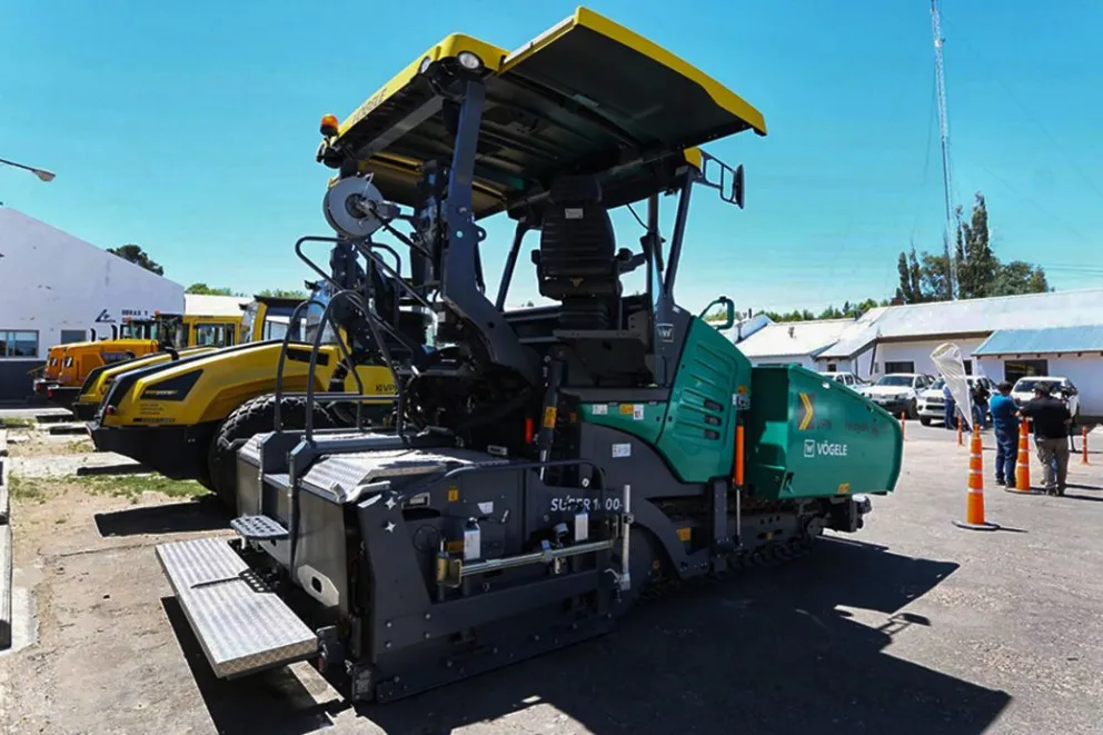 Además, Vialidad Neuquén incorporó una terminadora de asfalto Vögele S160-3. Se trata de un equipo de última generación, de origen alemán, que aporta máxima precisión, eficiencia y uniformidad en la colocación de mezclas asfálticas, elevando la calidad final de las obras pavimentadas.