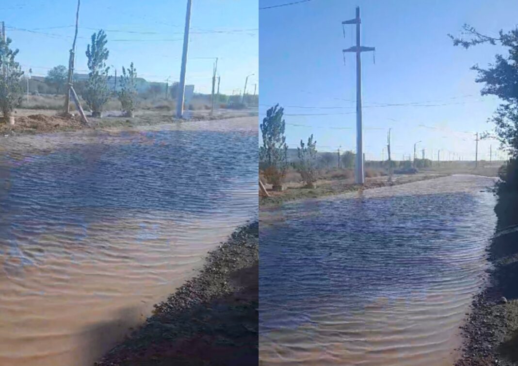 Vecinos de un sector de la calle Benito Machado de Centenario reclaman por una importante pérdida de agua que no solo complica el tránsito, también los accesos a los domicilios.