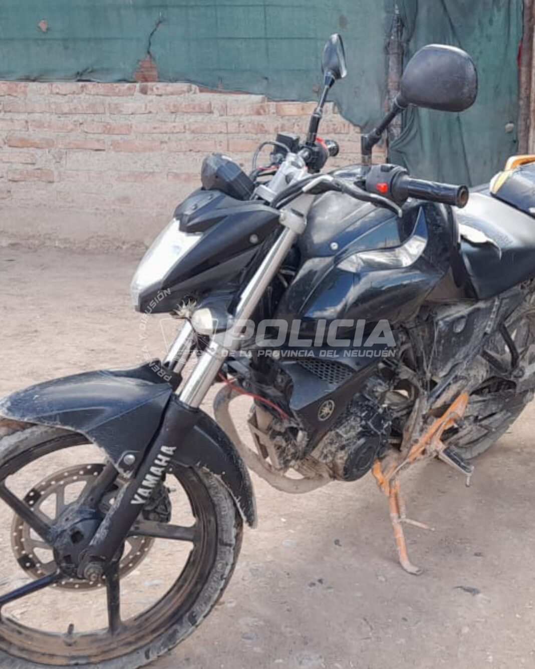 Con la descripción aportada, implementaron un patrullaje por la zona, logrando ubicar a un individuo con características coincidentes adentro de un domicilio cercano. Tras dialogar con una mujer, que se identificó como propietaria del lugar, los uniformados solicitaron verificar el rodado que se encontraba en el patio, constatando a través del número de cuadro que la motocicleta marca Yamaha FZ FI color negro registraba pedido de secuestro por robo desde el año 2022 por parte de la Comisaría Primera de Neuquén.