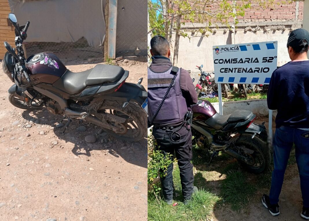 En un rápido procedimiento realizado el miércoles 24 por la tarde en Centenario, personal policial de la Oficina de Investigaciones de la Zona Periferia II recuperó una motocicleta Bajaj 400 cc que había sido robada en un domicilio de un trabajador petrolero el cual pudo radicar la denuncia en las últimas horas para que se la restituyan.