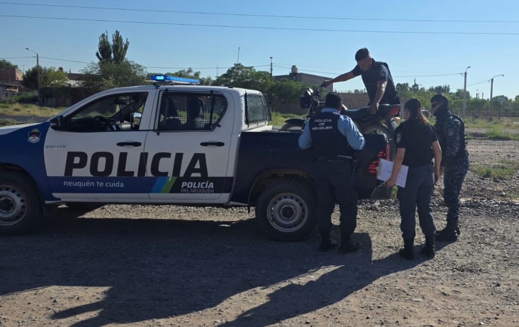 El viernes 09 minutos después de las 8:45 horas personal policial de la División Motorizada realizaba un patrullaje por la Avenida Lago Traful de Centenario cuando observaron un hombre a bordo de una motocicleta Honda CG 125 de color negra sin patente ni espejos.