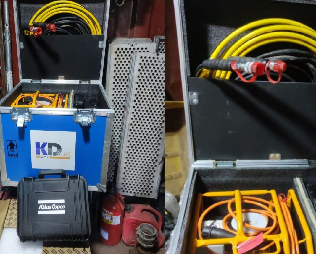 Luego en un sector del alambrado que delimita el predio encontró un boquete y allí a un lado faltaba la máquina de torque hidráulico marca Atlas Copco con sus tres llaves que se encontraba en valijas de color negro y sus mangueras de alta presión que estaban en otra de olor azul, además faltaba una máquina de soldar color amarilla y una garrafa de 10 kg.