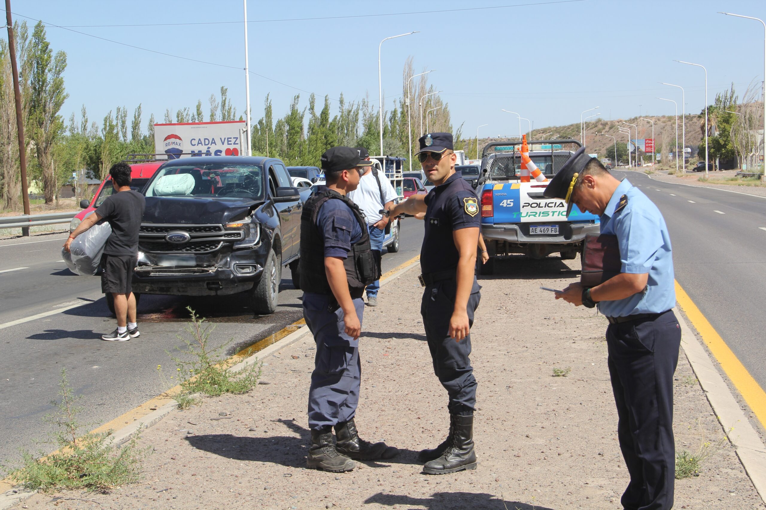 Un choque ocurrió en la Ruta N°7 el lunes 19 cerca de las 15:30 horas, sobre la mano Neuquén-Centenario, a la altura del Barrio 11 de Octubre. Un hombre de Villa Manzano transitaba en una Ford Ranger color negra e impactó contra la parte trasera de un móvil policial, Ford Ranger JP 1615, de la Comisaría Cuarta del Barrio Alta Barda.