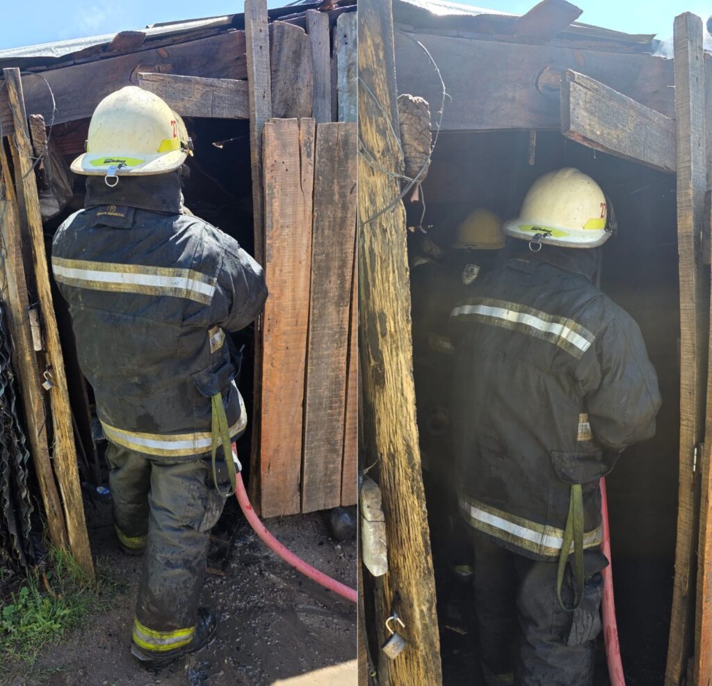 En la precaria construcción lindante a una vivienda el fuego se concentró en el techo y el hombre pudo salir del interior sin sufrir lesiones. Fueron vecinos que comenzaron a intentar apagar el incendio y alertaron a bomberos voluntarios por si el panorama aún se complicaba más.