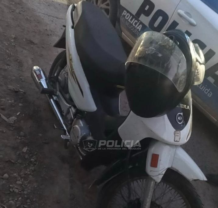 En horas de la noche del miércoles 07, personal policial de la Comisaría 52 que realizaba patrullajes preventivos en la ciudad de Centenario demoró a un joven y secuestró una motocicleta que registraba pedido de secuestro vigente.