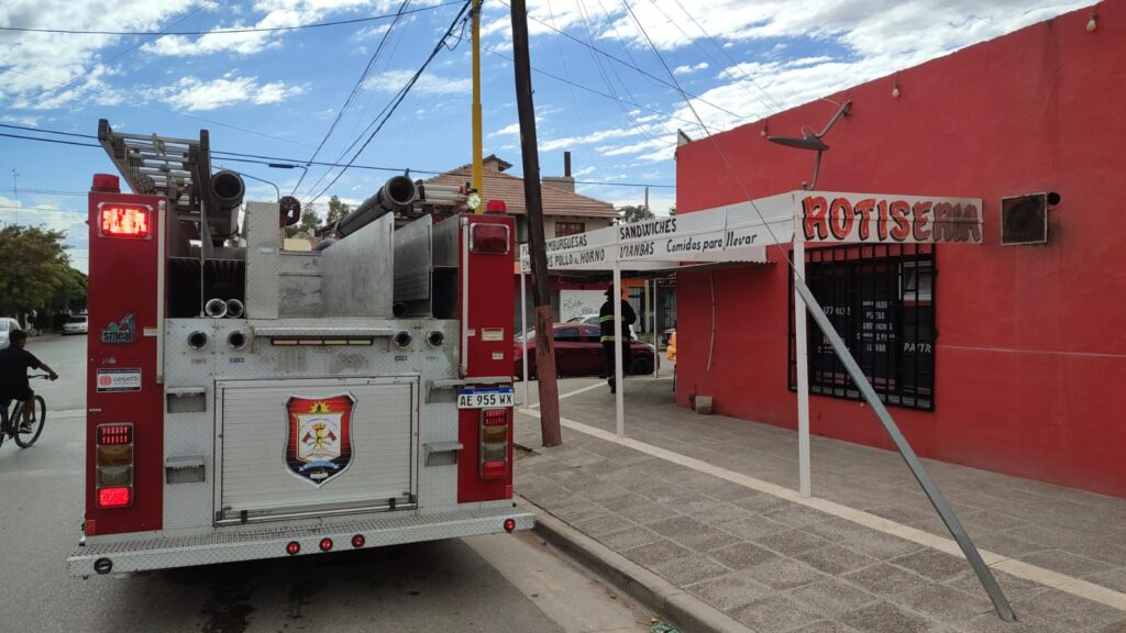 Un incendio en la cocina de una rotisería de Centenario ocurrió el lunes 02 por la mañana y motivó la intervención de bomberos voluntarios. Todo se habría desencadenado por un cortocircuito en la instalación eléctrica de un extractor y el fuego comenzó en ese sector del local comercial ubicado en la esquina de las calles Estados Unidos y Perú.