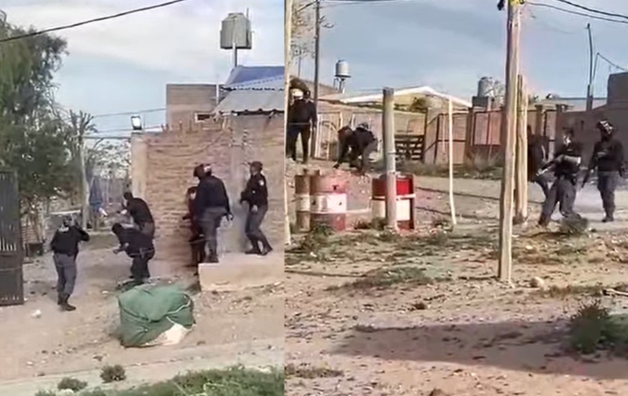 En otro video también se observa como algunos efectivos al llegar frente a una vivienda arrojan piedras hacia el interior y todo se transforma en una verdadera batalla campal, allí se oyeron gritos ¡hay niños adentro y no sigan!, luego comenzaron a replegarse.