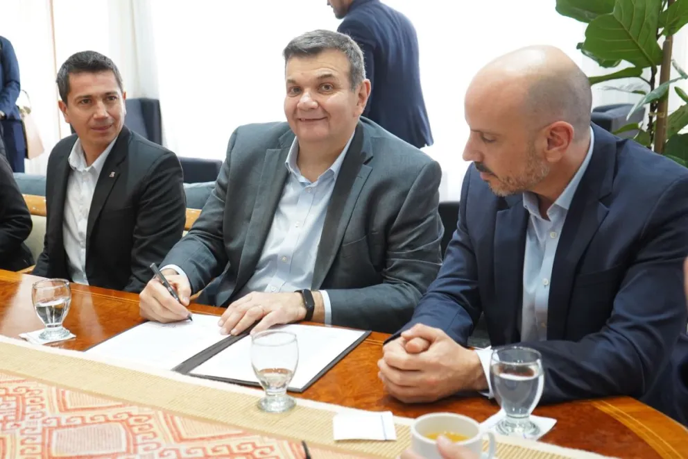 Del acto de firma con la empresa adjudicataria, también participaron los ministros Jefe de Gabinete, Juan Luis ‘Pepé’ Ousset y de Economía, Producción e Industria -a cargo de Infraestructura-, Guillermo Koenig; el intendente de Centenario, Esteban Cimolai; y el presidente del EPEN, Mario Moya, entre otros.