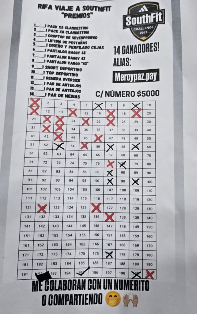 A su vez mencionó que organizan la venta de una rifa de 200 números a un valor de 5000 pesos cada uno para reunir fondos y poder viajar y alojarse en Buenos Aires. Para ello quienes deseen colaborar pueden hacerlo mediante contacto al 2995237905 y el pago se realiza por el alias Mercypaz.pay