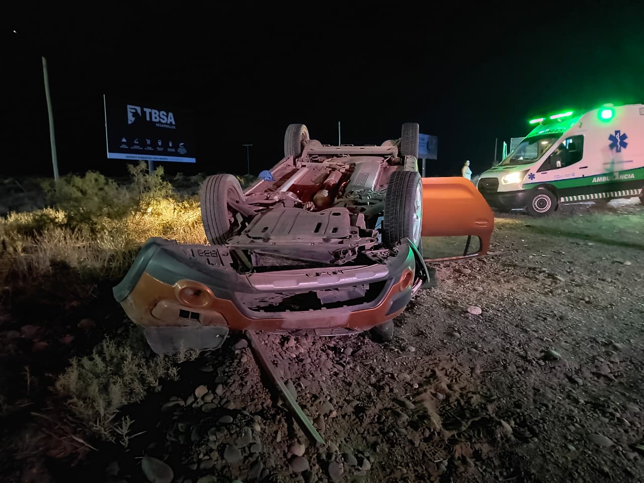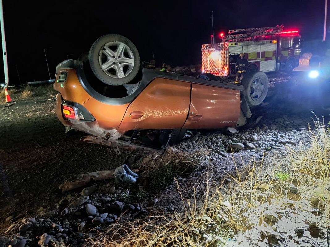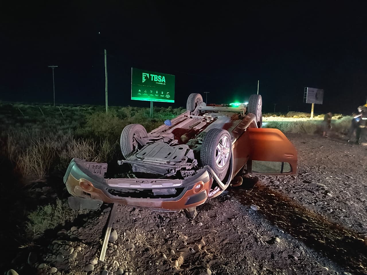 Las causas se investigan, pero en el rodado viajaban un hombre de 55 años y dos jóvenes de 22 y 29 años, todos con domicilio en Barda del Medio. El auto terminó volcado a un costado de la rotonda la cual no tiene iluminación desde que fue inaugurada la ampliación de la ruta años atrás.