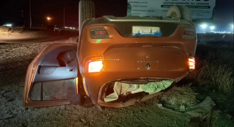 Un auto Renault Sandero Stepway volcó en la rotonda de las rutas provinciales 51 y 67, zona conocida como Río Neuquén camino al lago Mari Menuco, y tres personas resultaron heridas. El siniestro ocurrió cerca de las 23 horas del domingo 28.