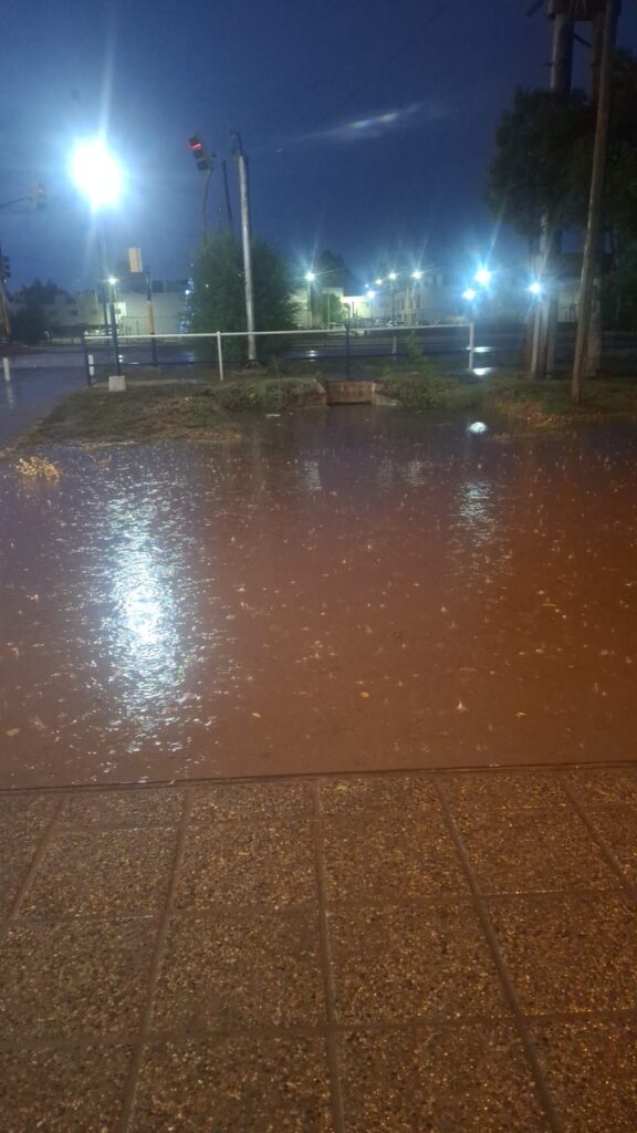 En la calle Padre Jacinto Stábile el desagote estaba en su máxima capacidad y el agua comenzaba superar los cordones, causando preocupación en comerciantes si la lluvia no aflojaba. Un camión chupa iba a intervenir de acuerdo a lo que fue informado y lo mismo en la zona de la segunda rotonda donde históricamente la mano Centenario-Neuquén de la Ruta 7 se veía afectada,