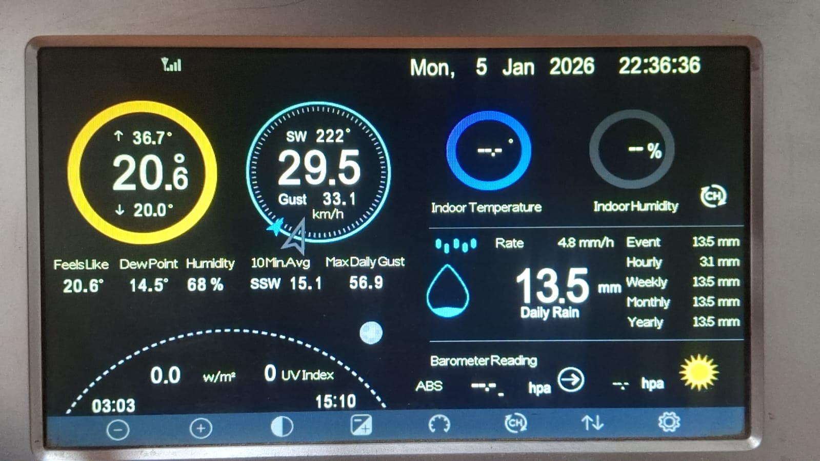 La alerta amarilla se cumplió en Centenario y en horas del atardecer del lunes 05 luego de que la temperatura alcanzara los 37 grados, los nubarrones llegaron y empezó la actividad eléctrica. En pocos minutos descargaron un total de 13.5 mm según datos brindados por la central de bomberos voluntarios, chaparrones de variada intensidad y ráfagas de viento de 60 km/h se registraban de a ratos. Cerca de las 22:30 la intensidad de la lluvia era menor, aunque igualmente era persistente.