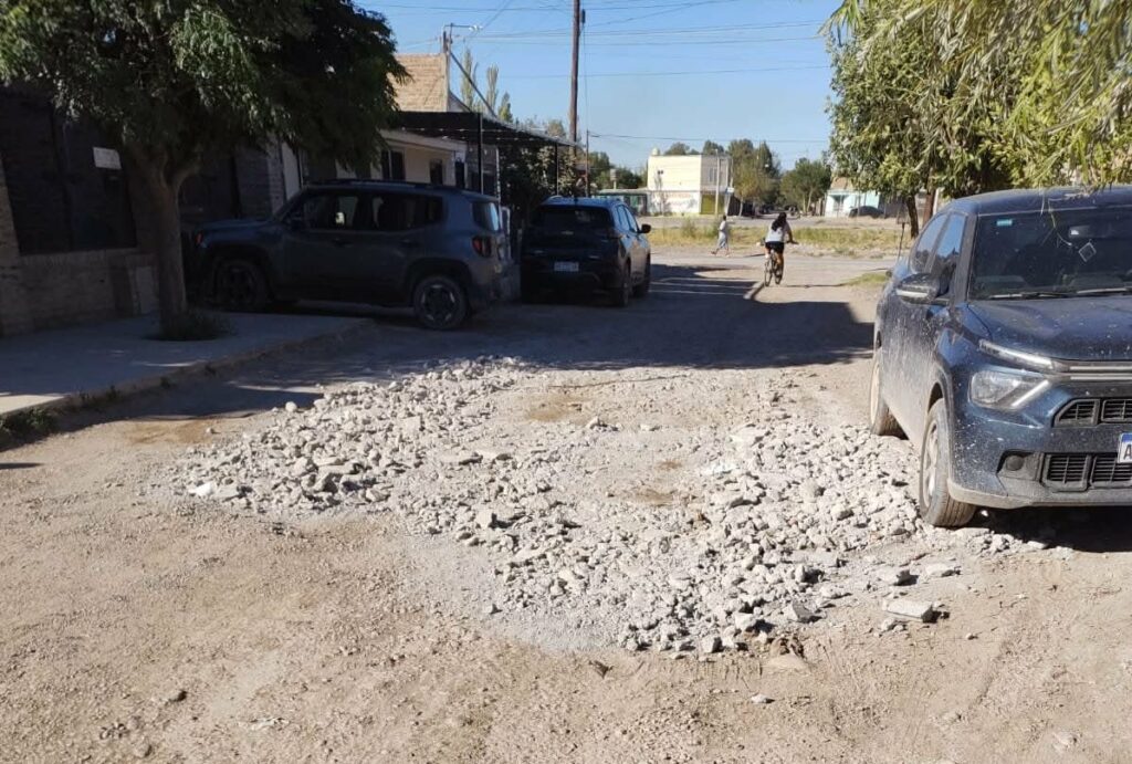 Cansados de que nadie de la municipalidad interviniera, esta semana decidieron ir con una camioneta y un carro cargado con material para taparlo. En muy pocos minutos solucionaron algo que venían soportando y que pone en evidencia el pésimo estado en el que se encuentran muchas calles de Centenario.