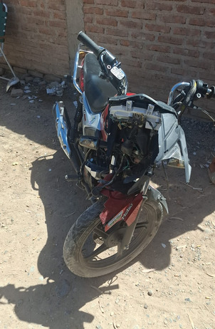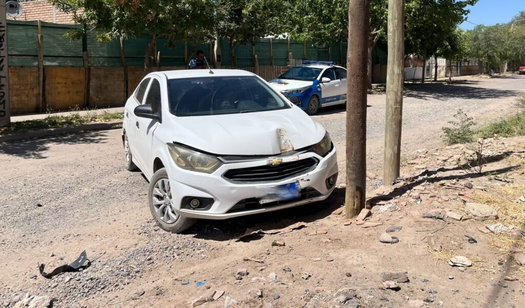 El auto tras el primer impacto terminó chocando un poste de tendido eléctrico y quedó atravesado sobre la calle. El motociclista se dio a la fuga luego del siniestro y fue multado además por carecer de licencia y seguro obligatorio, se supo que fue por sus propios medios al hospital local.