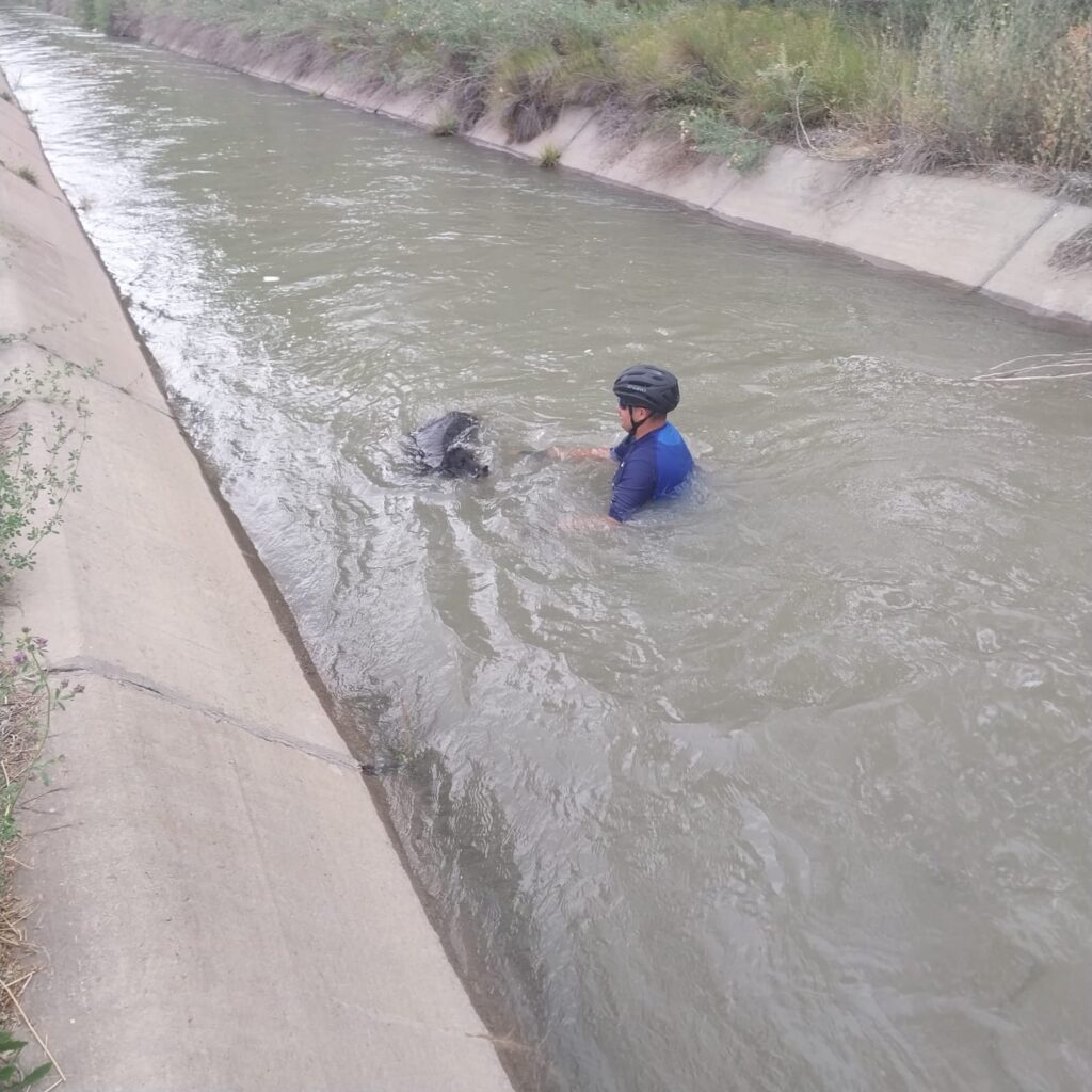 Miguel Aravena, un policía de la División Tránsito Villa Obrera de Centenario, salvó a un perro que se ahogaba en el canal de riego de Vista Alegre. El miércoles 11 por la tarde mientras andaba en bicicleta junto a su hermana observó que el can era arrastrado por el agua.