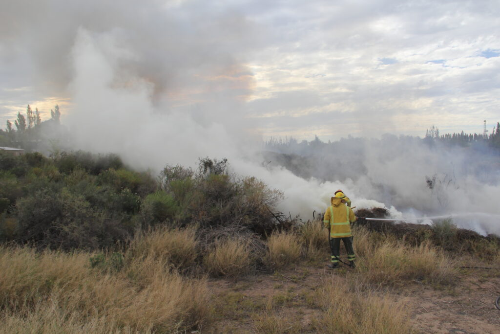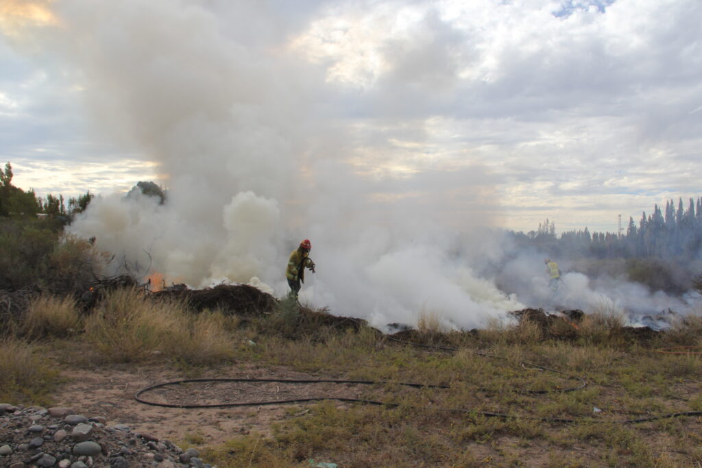 El domingo 12 la tarde parecía tranquila hasta que a las 16 horas en punto un importante incendio intencional motivó la intervención de bomberos voluntarios y personal policial de la Comisaría Quinta. Nuevamente como en los últimos meses por motivos que se investigan ardió un sector de hectáreas abandonadas ubicadas entre el Cementerio de Centenario y el mayorista Tina, a la vera de la Ruta 7.