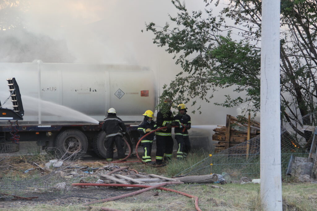 Inspectores municipales cortaron las calles para que tres unidades de bomberos voluntarios y efectivos de la Comisaría Quinta accediera de manera ágil. El hecho ocurrió pasadas las 18:30 y en los primeros minutos se pensó que podía haber combustible y por ello las tareas se centraron en apagar el fuego sobre la cisterna.