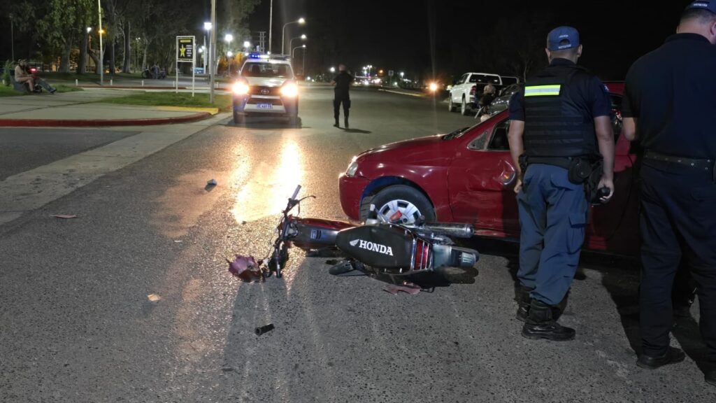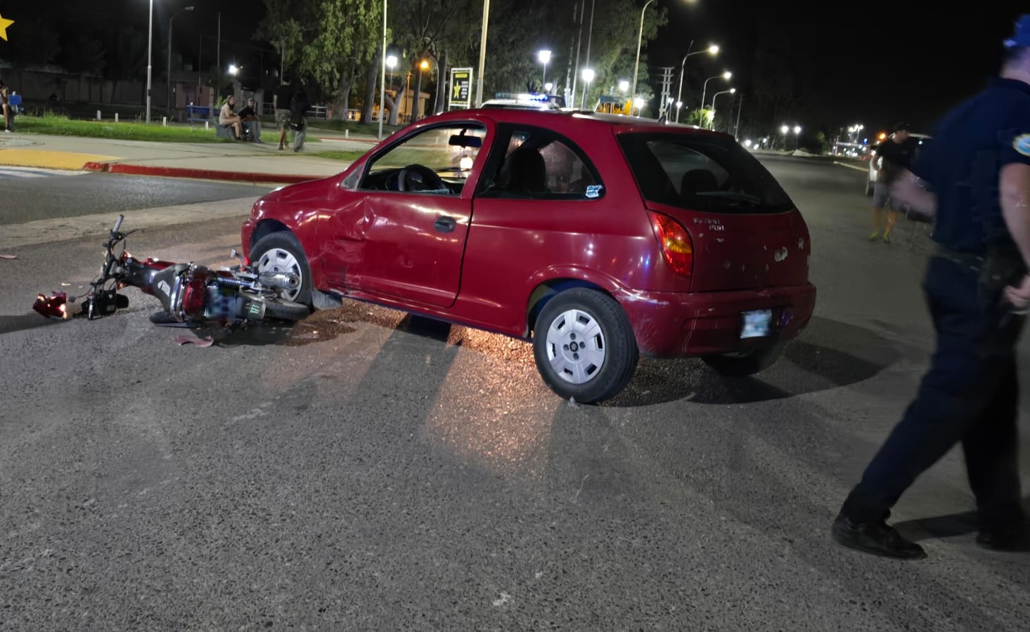 En horas de la noche del lunes 16 un joven de 22 años chocó su motocicleta Honda Wave 110 cc de manera violenta contra un auto Suzuki Fun en el que iban dos jóvenes. El siniestro ocurrió en la Plaza del Bicentenario, en la esquina de Expedicionarios del Desierto y Avenida 11 de Septiembre.