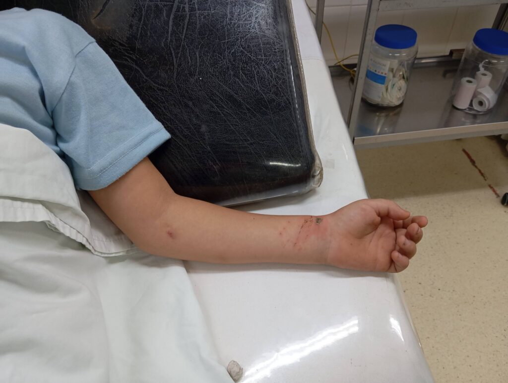 Allí fue que sufrió una descarga en su brazo izquierdo, en medio de la conmoción su mamá decidió subirlo al auto y trasladarlo al hospital rápidamente para que sea atendido. De acuerdo a la información que se conoció, presentaba quemaduras en una de sus muñecas, pero se encontraba fuera de peligro.
