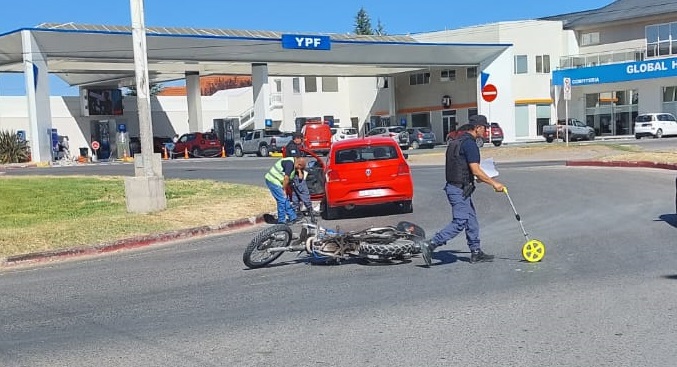 En horas de la mañana del jueves 08 un choque ocurrió en la primera rotonda de la Ruta N°7 en Centenario. Un auto Volkswagen Gol Trend conducido por una mujer y una motocicleta Honda de la Policía de Tránsito impactaron.