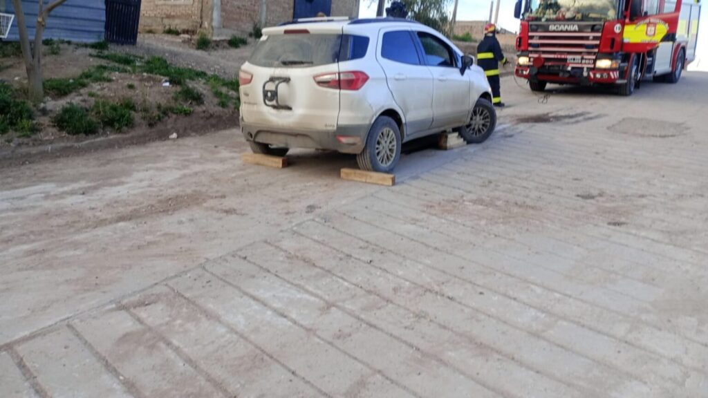 Si bien se aguardó la llegada de maquinaria municipal durante dos horas para sacar la camioneta con más facilidad y seguridad, esto no sucedió y finalmente bomberos tuvieron que ingeniárselas para retirar la Ecosport.