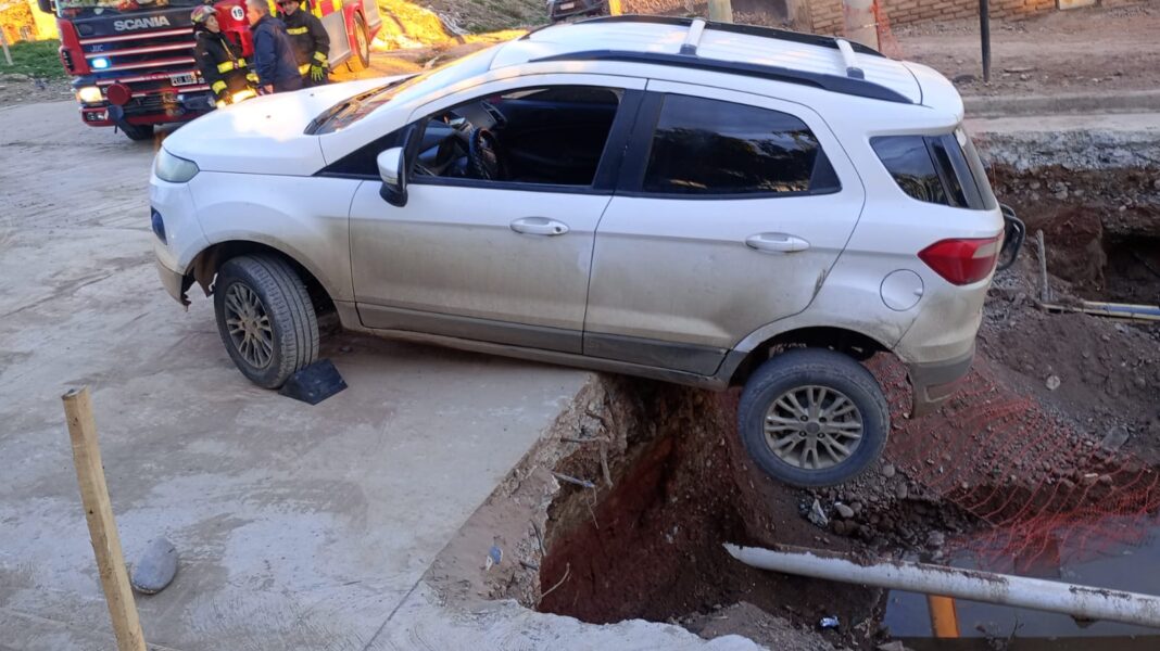 El domingo 21 cerca de las 6:30 de la mañana una camioneta Ford Ecosport conducida por una mujer de Cinco Saltos quedó con la parte trasera colgando de la obra de la calle Formosa. Al parecer quien la conducía no advirtió el corte debido a la escasa señalización y una calle lateral habilitada.