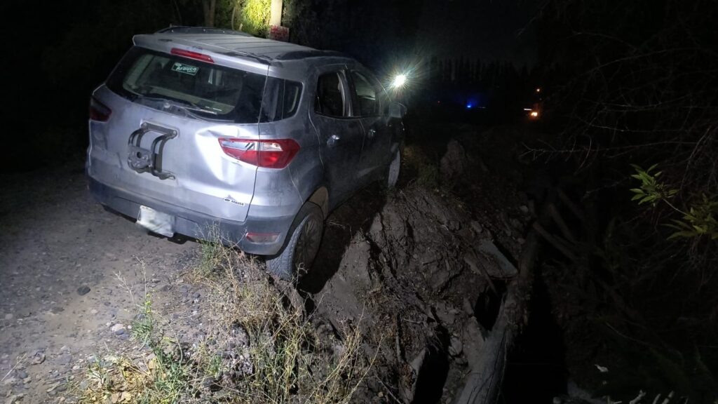 Una camioneta Ford Ecosport se encontraba a punto de caer a ese brazo del río Neuquén ya que una mala maniobra de quien la conducía la dejó a punto a de desbarrancar. Tras estabilizarla lograron retirarla del terraplén sin que todo se complicara aún más, esto también con la intervención de Defensa Civil y además se hizo presente personal policial de la Comisaría Quinta.