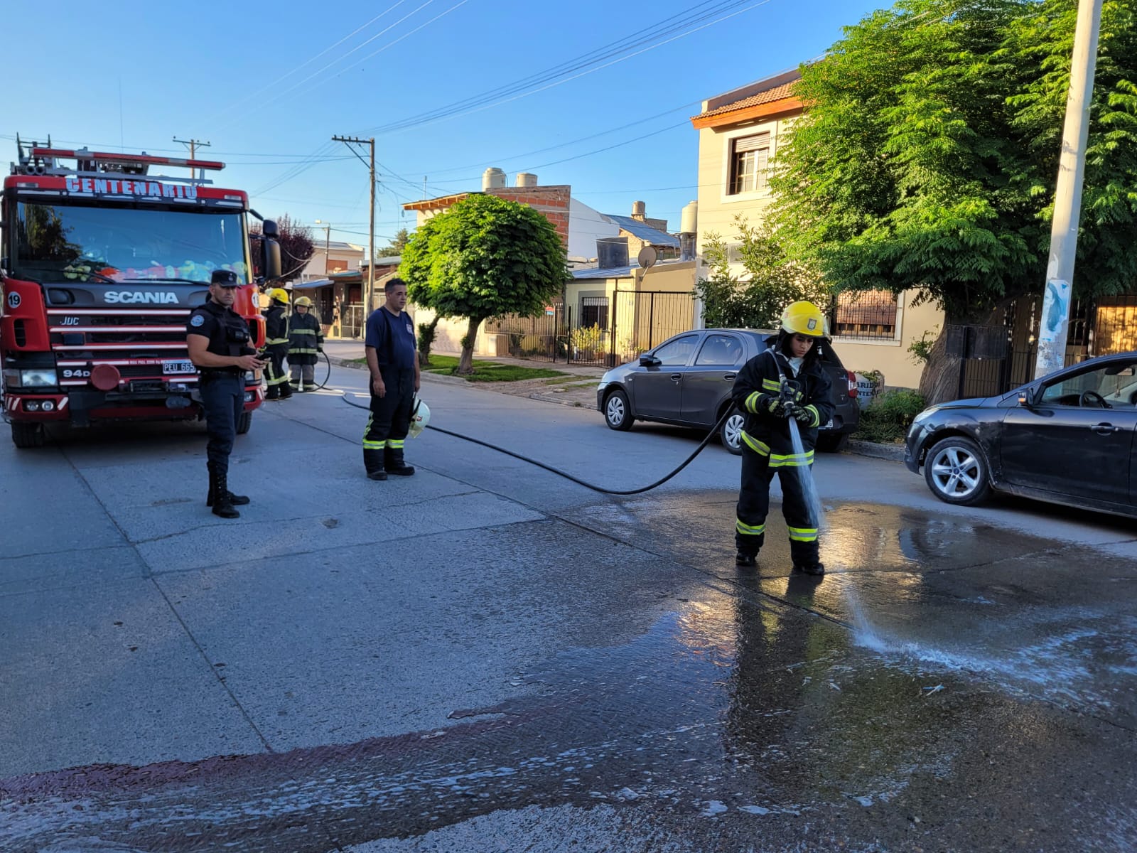 La mujer tras esto cayó y sufrió un corte en la cabeza por lo que perdió sangre, otros peatones la asistieron hasta la llegada de efectivos policiales que fue rápida, luego se hicieron presentes bomberos voluntarios y una ambulancia con personal de salud del Hospital Natalio Burd. En una ambulancia procedieron a trasladar a la lesionada la cual se encontraba consciente según indicó el segundo jefe de bomberos, Víctor Arroyo.