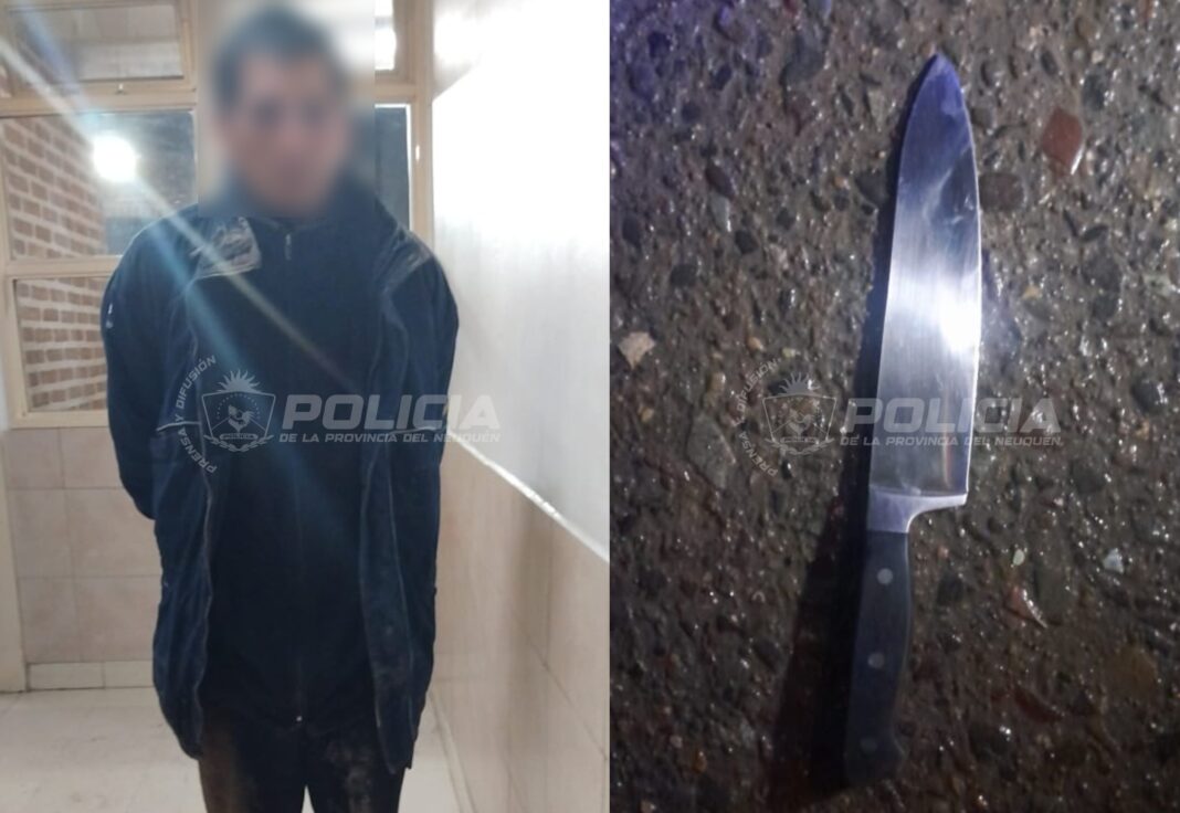 Según los primeros testimonios, el propietario de la casa advirtió la presencia del intruso y, con la ayuda de otros vecinos, logró reducirlo hasta la llegada del personal policial. Durante la intervención procedieron al secuestro de un cuchillo tipo carnicero de unos 25 centímetros, el cual habría sido arrojado durante el intento de huida.