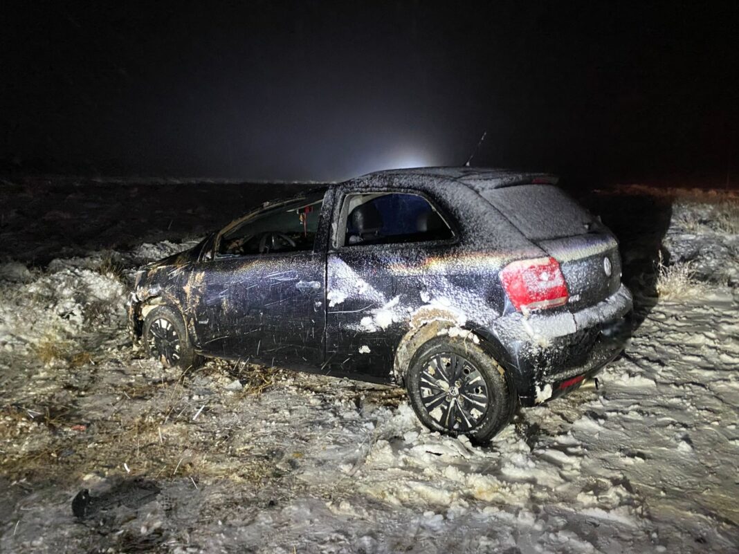 Un Volkswagen Gol Trend color azul en el que iban una joven de 24 años y un joven de 26, ambos oriundos de Neuquén capital, finalizó volcado en la sub banquina. Los dos afortunadamente no sufrieron lesiones a pesar de que el rodado finalizó apoyado sobre el lateral izquierdo.